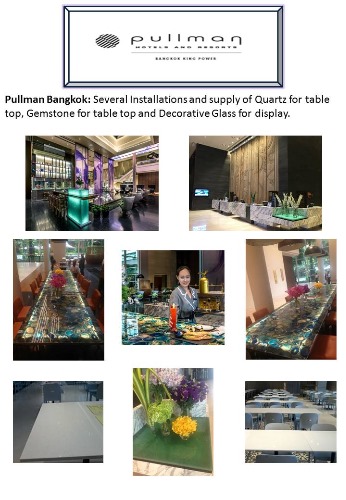 View MoreInstallation of Blue Agate Gemstone, Green Jade Decorative Glass and supply of Quartz Table tops for restaurant.