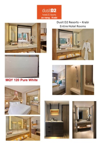 View More173 Beautifully designed guestrooms featuring Bathrooms countertops, shower sits, coffee desk all used MQY120 Pure White Quartz