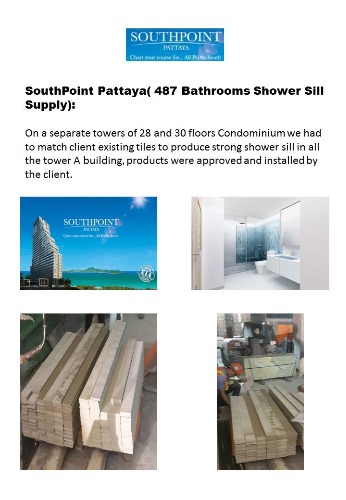 View More487 Bathrooms Shower Sill Supply. On a separate towers of 28 and 30 floors Condominium we had to match client existing tiles to produce strong shower sill in all the tower A building, products were approved and installed by the client.