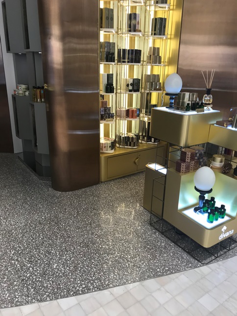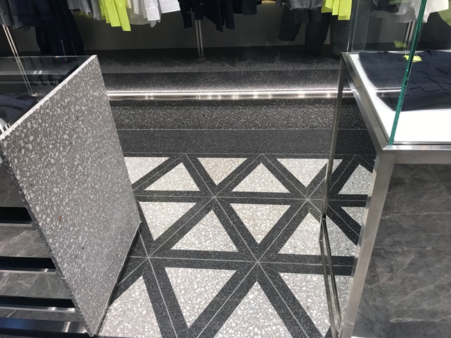 Bath & Bloom on 2nd floor used MZW 401 Terrazzo Ball & Rava on 4th floor used MZW 401 Terrazzo as well as MQW 110 platinum black Quartz